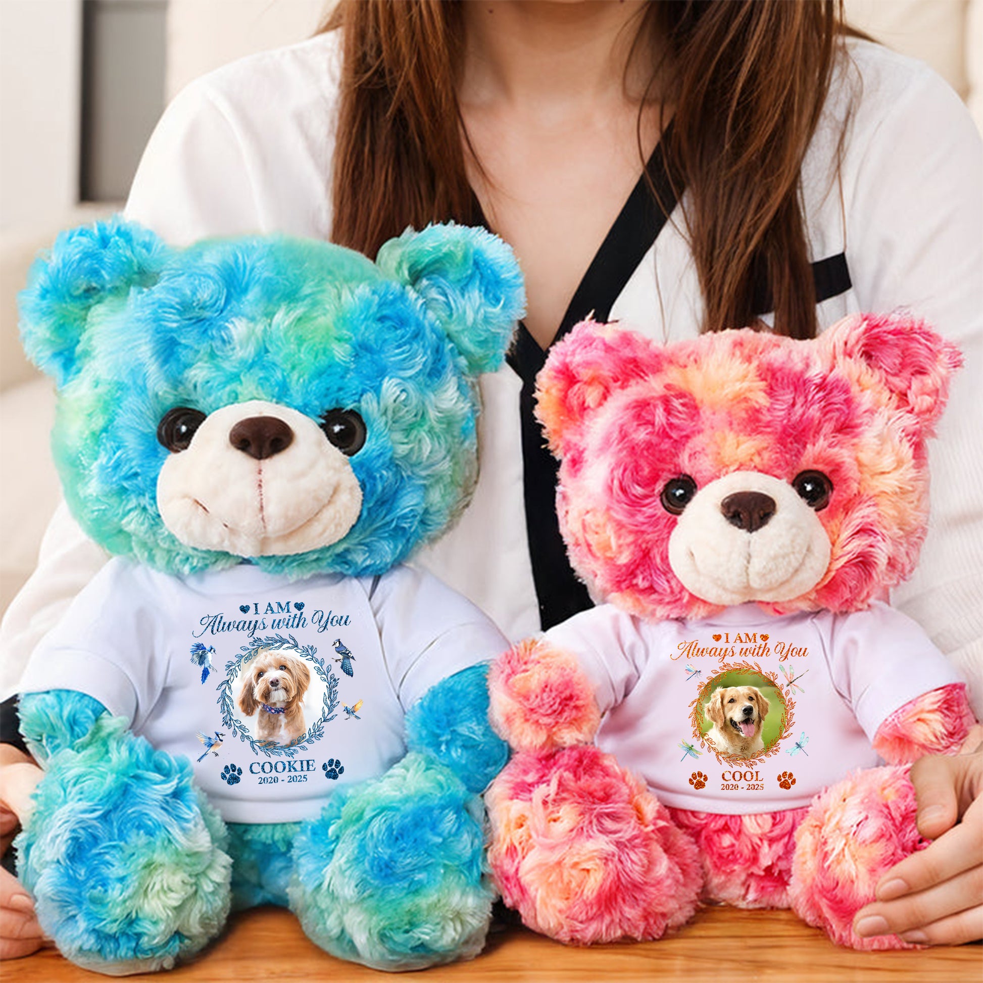 This teddy bear is a cozy blend of comfort and sentiment, perfect for snuggles and lasting memories. With its plush softness and personalized T-shirt, this bear is more than just a toy, it is a cherished keepsake full of sentiment